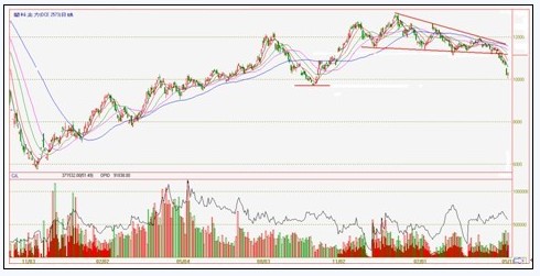 從技術(shù)上看,在經(jīng)歷09年牛市之后,2010年第一季度實(shí)為LLDPE頭部形成期。整體看LLDPE屬頭肩頂形態(tài),5月7日破位下行,下跌趨勢展開。當(dāng)前LLDPE期價已下跌至10000關(guān)口附近預(yù)計將獲得支撐反彈,反彈高點(diǎn)預(yù)計高點(diǎn)在10660附近,若在106600附近整理后繼續(xù)上行,則跌勢結(jié)束,若下破10000關(guān)口,則下跌趨勢將延續(xù),下方支撐為9500元/噸。