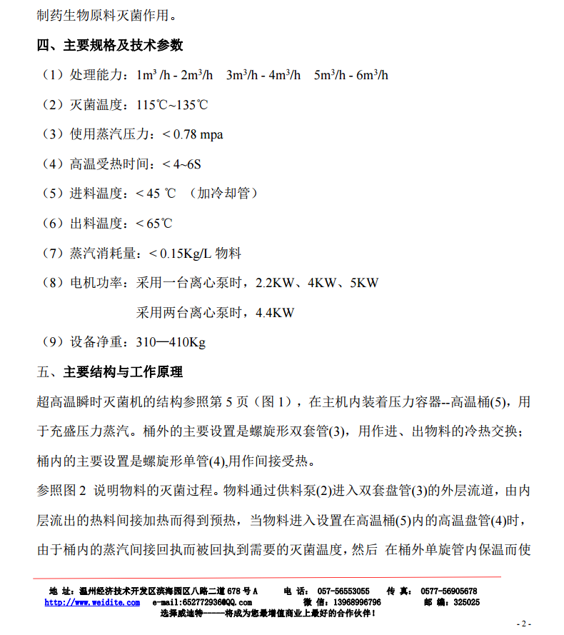 灭菌机与物料接触部分,都采用不锈钢制造,双套盘管用专用机床加工,同心度高。内表面光洁,从而使液料通过双套盘管时形成均匀的液层,加热十分均匀。