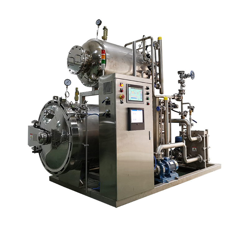 该设备由锅体、锅盖、开启装置、锁紧模块、安全联锁装置、轨道、灭菌框、蒸汽喷管及若干管口等组成、锅盖密封采用充气式硅胶耐温密封圈,密封可靠,使用寿命长。具有受热面积大,热效率高、加热均匀、液料沸腾时间短、加热温度容易控制等特点、杀菌锅主要用于食品行业、医药等各领域。
